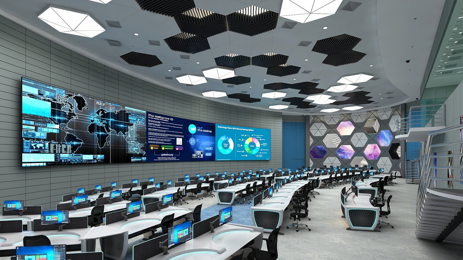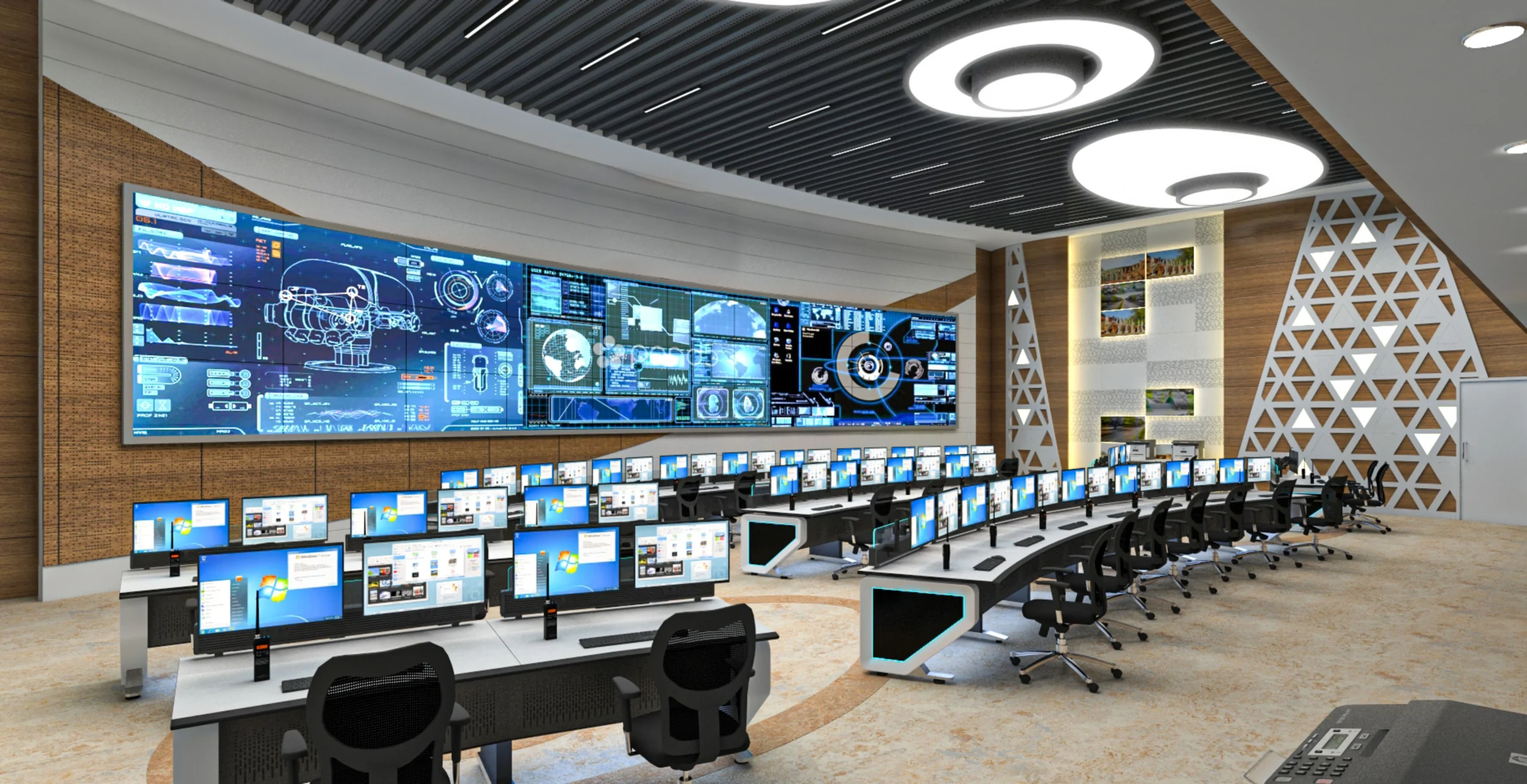 Comprehensive solutions for modern control rooms and command centers, integrating technology, ergonomics, and design.