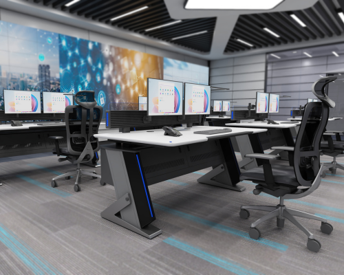 Ergonomic and modern console designed for control room clarity, comfort, and operational efficiency.