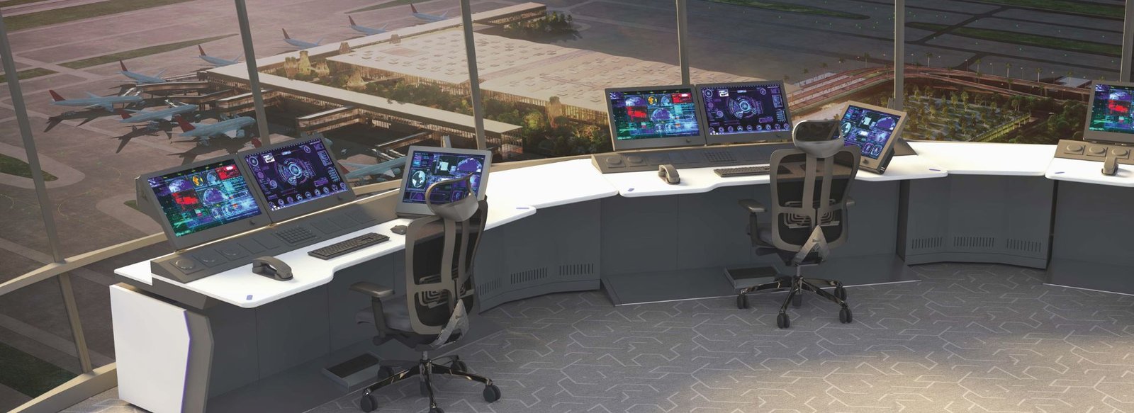 Specialized console designed for air traffic control environments requiring precision, visibility, and reliability.